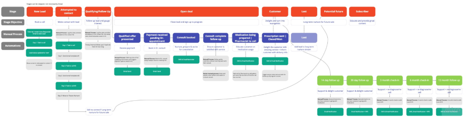 After the discovery phase, our main focus is building a Customer Journey Map (CJM), as this will dictate everything else we do within HubSpot.